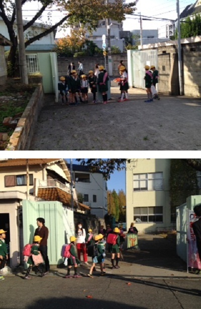 北門と西門に分かれてあいさつを呼びかけました。