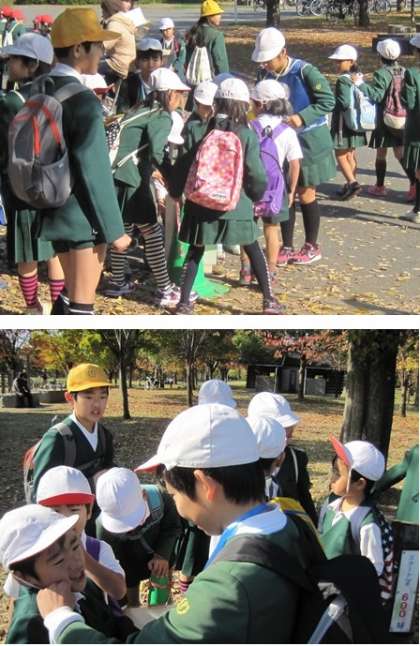 2時間目から4時間目まで鶴見緑地でオリエンテーリングを行いました。