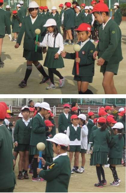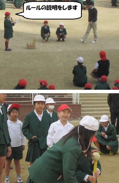 今日の児童集会は5年の集会委員さんが考えた、バトンとソフトボールを使ったリレーでした。