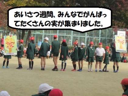 児童集会の最後に、運営委員会の児童から、15日まで行われていたあいさつ週間結果のお知らせもありました。