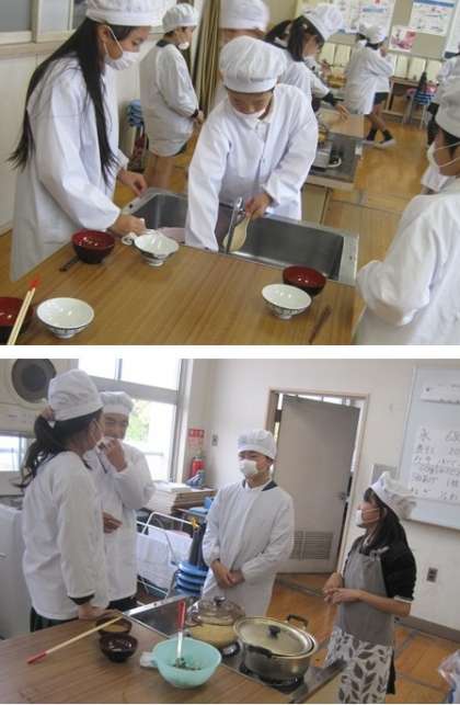 今日は5年生のもう一方のクラスが調理実習をしました。