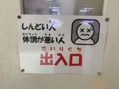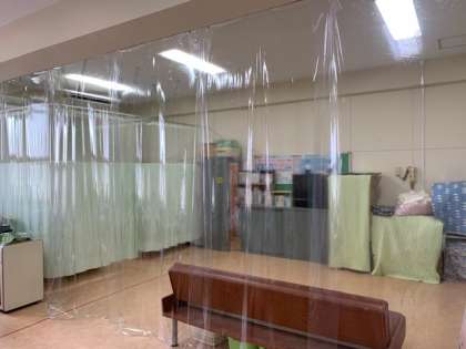 「しんどい人 体調の悪い人」「けがをした人 用事のある人」に分かれます。部屋の真ん中で区切られています。