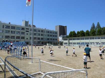 運動場に児童の歓声が返ってきました。