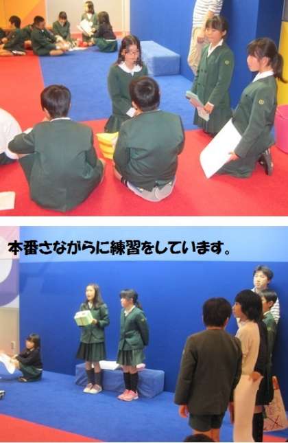 5年生がキッズプラザへ校外学習に行きました。今回キッズプラザに行ったのは、キッズプラザの中のスタジオを使ってニュース番組作りについて学習するためです。