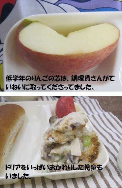 今日の「きのこのドリア」に、しめじやマッシュルームと一緒に入っています。