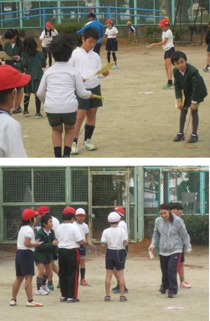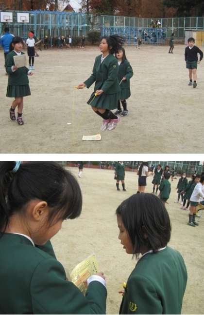 4年生も担任の先生や委員会の児童に見てもらいながら検定を受けました。