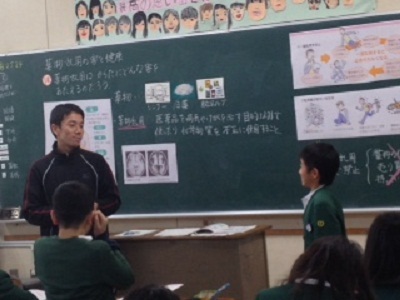 資料をもとに、薬物乱用が、からだにどんな害をあたえるか学習しました。
