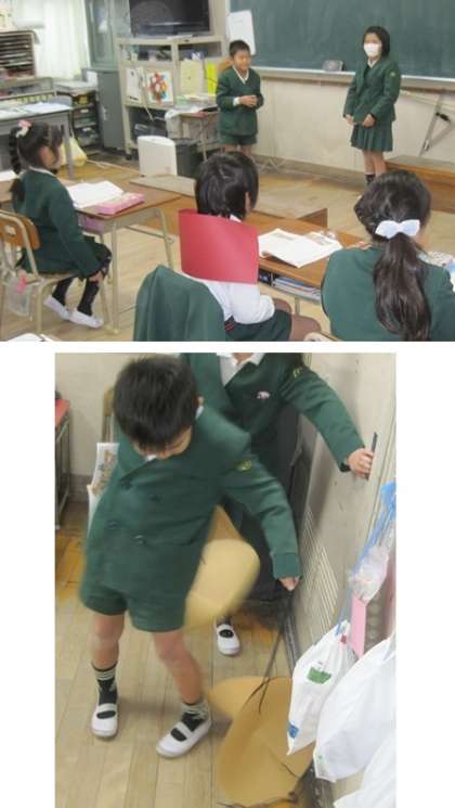 2年生が国語の勉強で「かさこ地蔵」の劇(動作化)の練習をしていました。かさこ地蔵の学習のまとめとしておこなっているそうです。