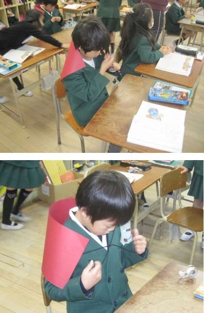 赤い画用紙を首元に巻いているのは「お地蔵さま」の役の児童です。