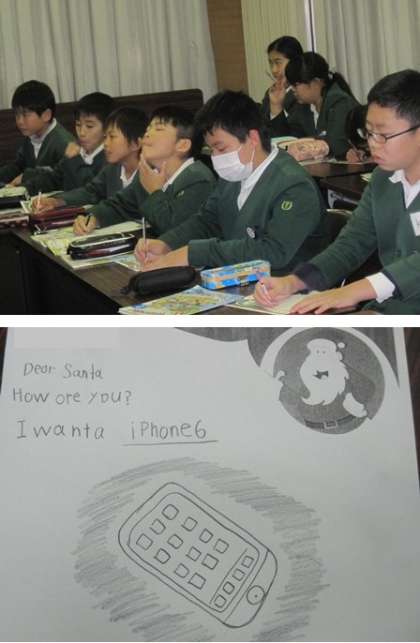 最初にクリスマスに欲しいプレゼントについてのシルエットクイズをした後、サンタさんにお願いの手紙を書きました。