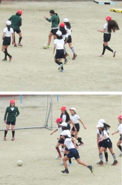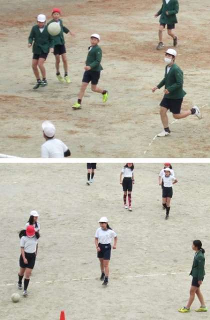 毎日寒い日が続きますが、運動場で6年生が元気に体育をしていました。