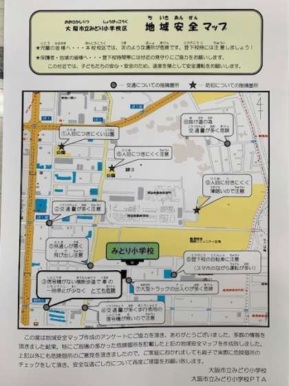 みどり小学校の安全マップがPTA活動の協力のもと完成しました。