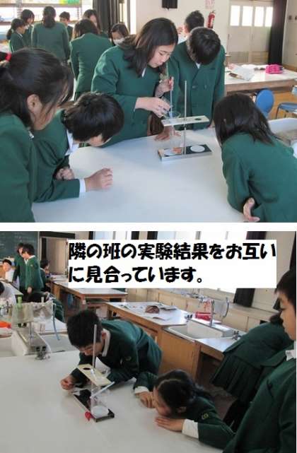 5年生の理科の実験の様子です。