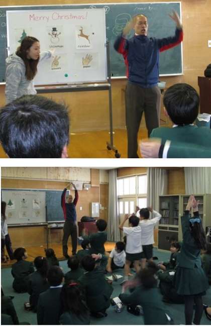 今回は、「雪だるま」と「ツリー」と「トナカイ」という英語を習い、それと「じゃんけん」を組み合わせて体を使って楽しく覚えていました。