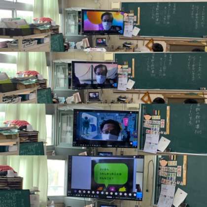 みどり小学校では、月曜日の昼休みに児童昼会をしています。今回は、始まる前に校長先生の背景がチェンジして、児童も大喜びでした。また、校長先生の「最近うれしかったことは、どんなこと?」も一人一人自分のことをふり返って考えていました。