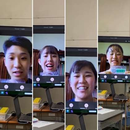 本日より教育実習が始まりました。児童昼会で4人がリモートで自己紹介をしました。よろしくお願いします。