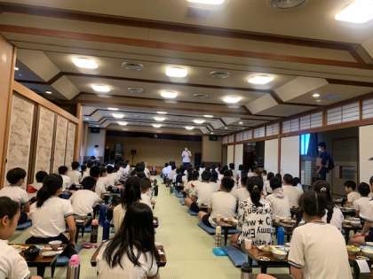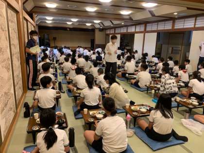 今日も、前を向いて、となりと間を開けていただきます。全員元気です!