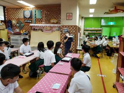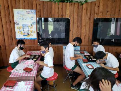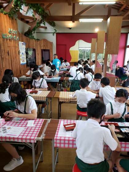残念ながら、シーカヤックは中止になりました。今から、みんなで、シェルクラフトです。