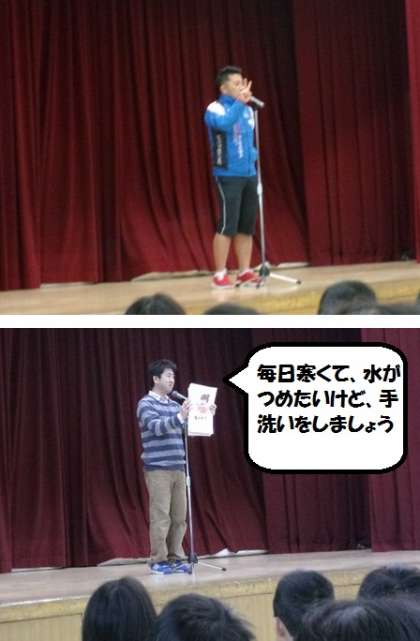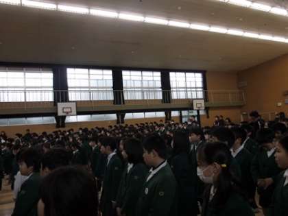 その後、生活指導、保健指導の話を聞き、みんなで校歌をうたいました。