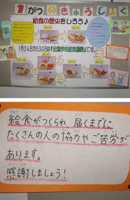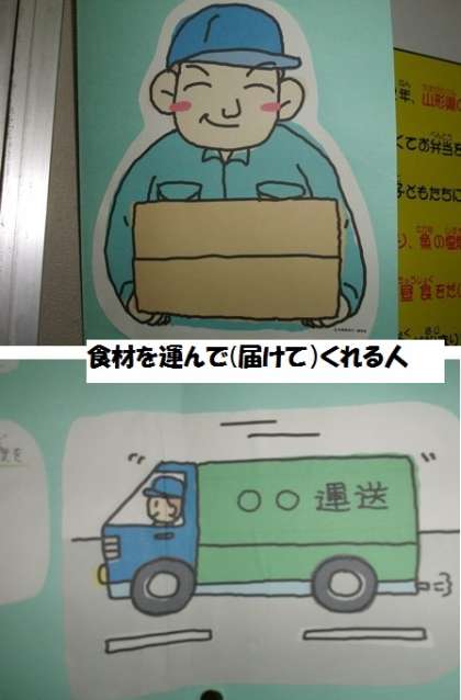 私たちが毎日おいしい給食を食べることができるのは、見えないところでいろんな人が手助けしてくれているからです。