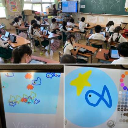 ビスケットを使って絵を動かしました。魔法の眼鏡の中に自分で描いた絵を入れると、上に動いたり回転したり・・・変身することもできるんだよね!