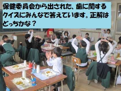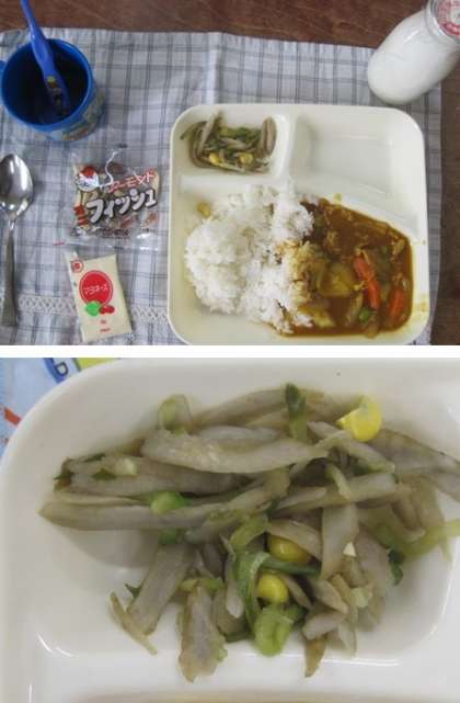 今日の給食には「ごぼうサラダ」が出ていました。かみ応えのあるサラダです。かたいものを、よくかんで食べると、だ液がよく出てむし歯になりにいそうです。よくかんで食べましょうね。