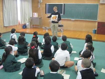 最初、なかなか英語で動物の名前を言えない児童もいましたが、エディが何度も大きな声で言ってくれるので、みんなもすぐに覚えることができました。
