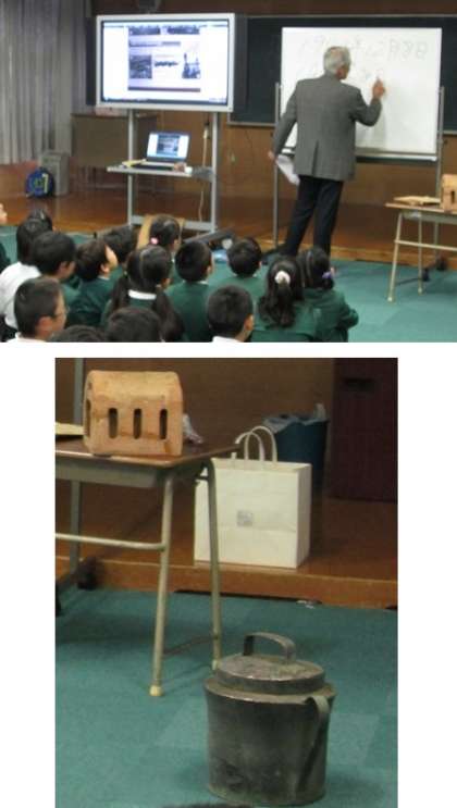まず、多目的室で写真や、持ってきていただいた昔の「こたつ」などの実物を見せていただきました。