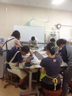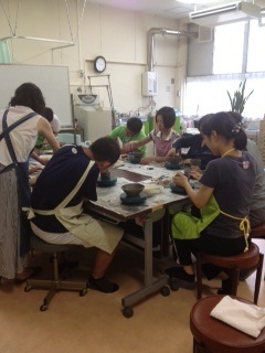 陶芸の研修会が行われました。つちひねりをして、カップを作っていました。エプロン姿の先生方がとてもチャーミングでした(笑)