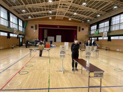 ほんねんどは、説明会は中止で資料の配布、物品販売と標準服の販売を行いました。