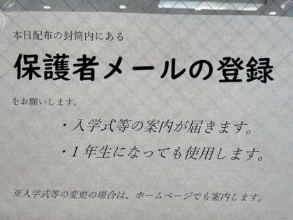 今後の連絡のため、保護者メールの登録をよろしくお願いします。