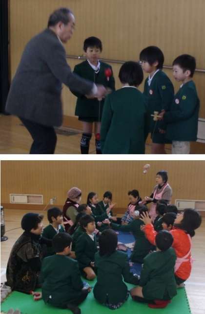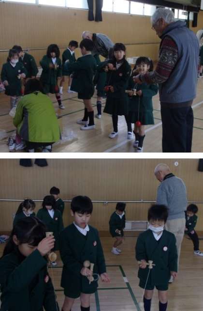 地域の方に学校へ来ていただいて「むかしあそび」をしました。