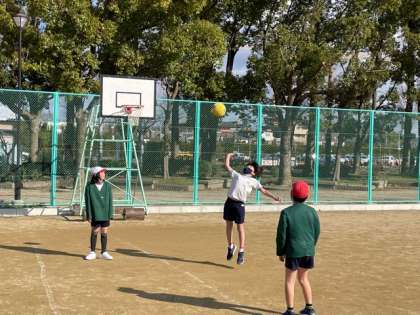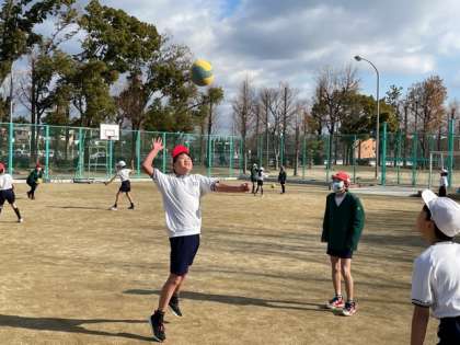 ※落ちてくるボールを高いところで打つのはなかなか難しい。
