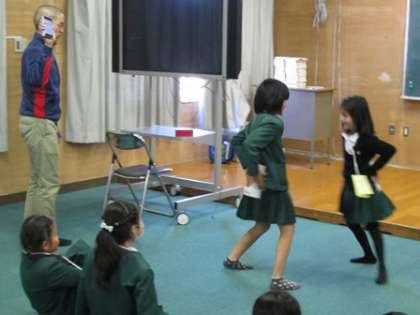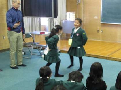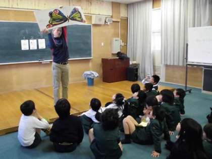 最後にエディが「はらぺこあおむし」お話を英語で読んでくれました。今日学習した果物の名前がいっぱい出てきました。