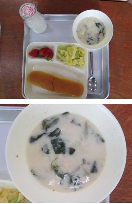 また、今日の給食では「いちご」も出ていました。真っ赤でつやつや光っておいしそうでした。