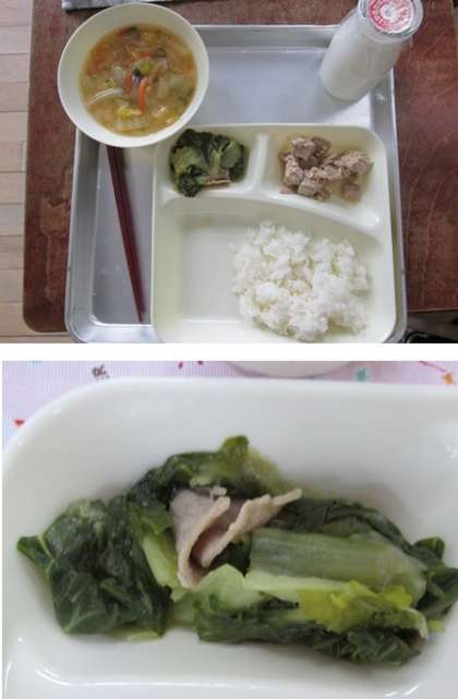 今日の給食では「大阪しろな」を煮びたしにしています。