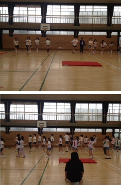 子ども会のダンスに所属している児童が日曜日に講堂でダンスの練習をしていました。