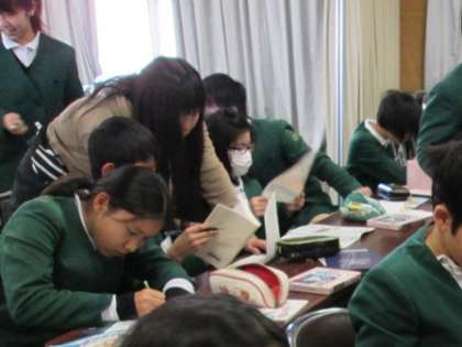わからない単語は辞書で調べたり、エディや先生に質問したりしてなんとか完成させようとみんながんばっていましたよ。