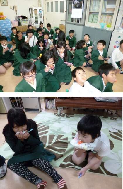 予定されていた日が学級閉鎖で行えなかったので、日程が変更になり、27日にフッ素塗布が行われました。