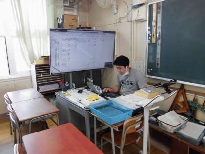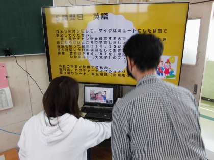 今日の昼からの授業です。6年生は国語の説明文教材の段落わけの授業でした。前時では、小グループに分かれた話し合いもできていました。5年生は英語の授業です。初めての双方向の授業ができました。子どもたちも楽しみながら取り組んでいました。