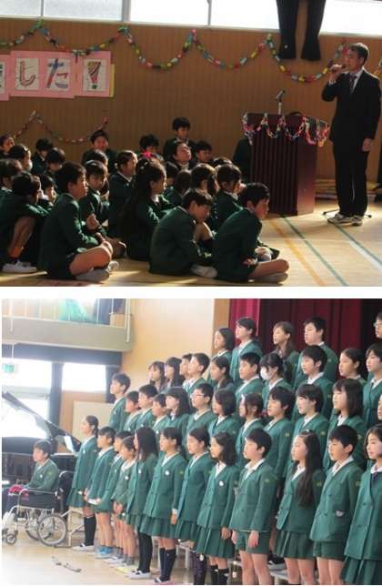 校長先生のお話のあと、全員で校歌を歌いました。
