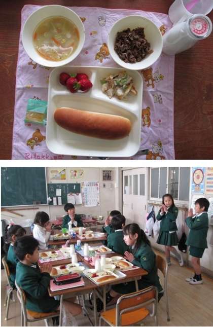 卒業お祝い献立には、6年生の卒業をお祝いする気持ちがこめられています。いつもよりおかずの数が多く、食器も大小のおわんを使っています。