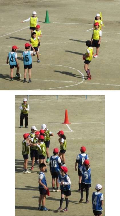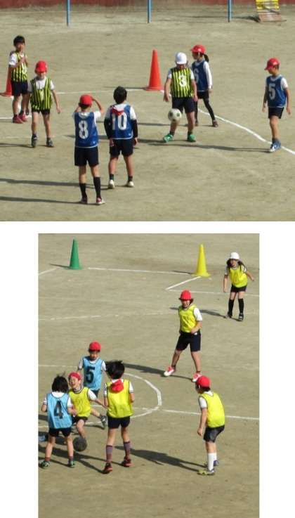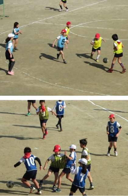 4年生が仲良くサッカーをしていました。