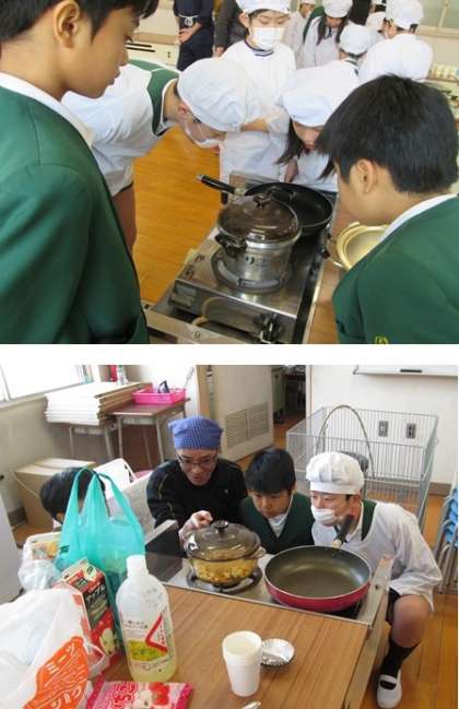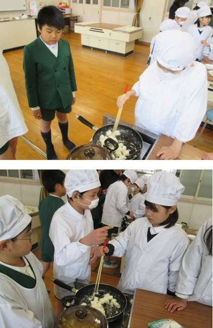 最初に先生から作り方を教えていただいて、グループごとに分かれて作りました。