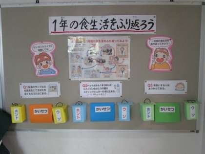 楽しくクイズに答えながら給食のことがわかるしかけになっています。