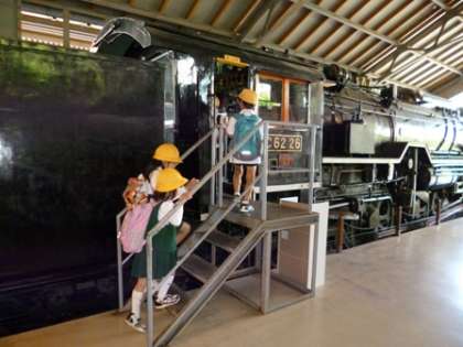 さぁ、交通科学博物館に出発です。そして、楽しみにしていた機関車に乗りました。