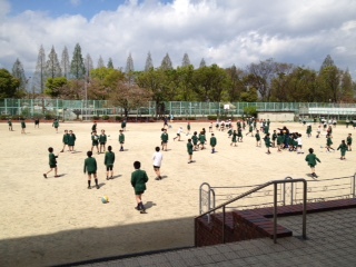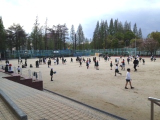 今日の天気は雨のちくもりです。運動場がかわいてきたので昼休みから外あそびができるようにしました。