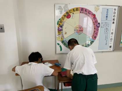 みんなよりも少し早く給食を食べて委員会活動に取り組んでいます。