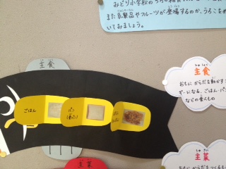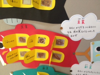 「主食」「主菜」「副菜」の説明と、その献立例がこいのぼりに隠されています。