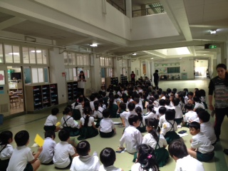 1年生も2年生も先生のお話を真剣に聞いていました。「がっこうたんけん」が楽しみですね。